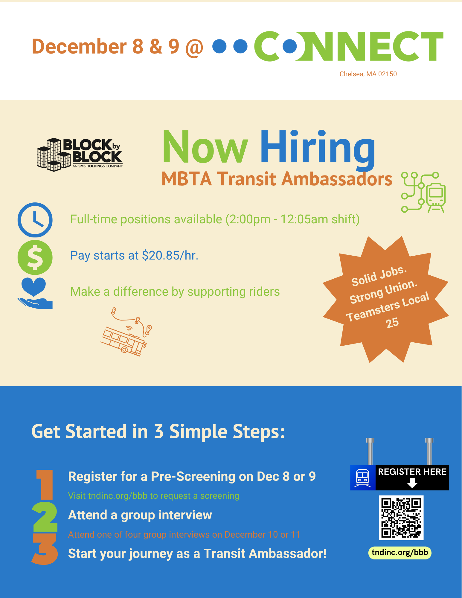 Note: Block by Block and MBTA require candidates to have English Language Proficiency to be considered for this role.